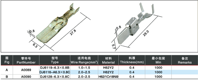 DJ616A-6.3X0.8A/DJ617-6.3X0.8B/DJ617-6.3X0.8C